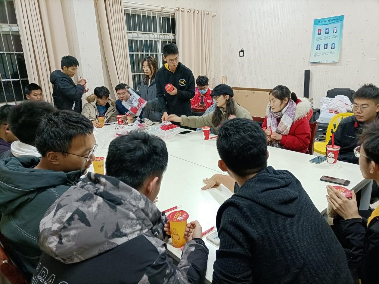 为了释放压力,丰富成员们的课余文化生活,物电院心助会于12月12日在升华公寓一栋活动室开展了主题为冬夜小灶的奶茶沙龙活动。辅导员龙欣琪老师,会长陈腾雨与大家围坐一圈,边喝奶茶边聊天,吐槽,谈论有关近日四六级考试等方面的话题。20级的成员向部长、会长们取经,询问四级考试的注意事项,得到了学长学姐们的加油打气。