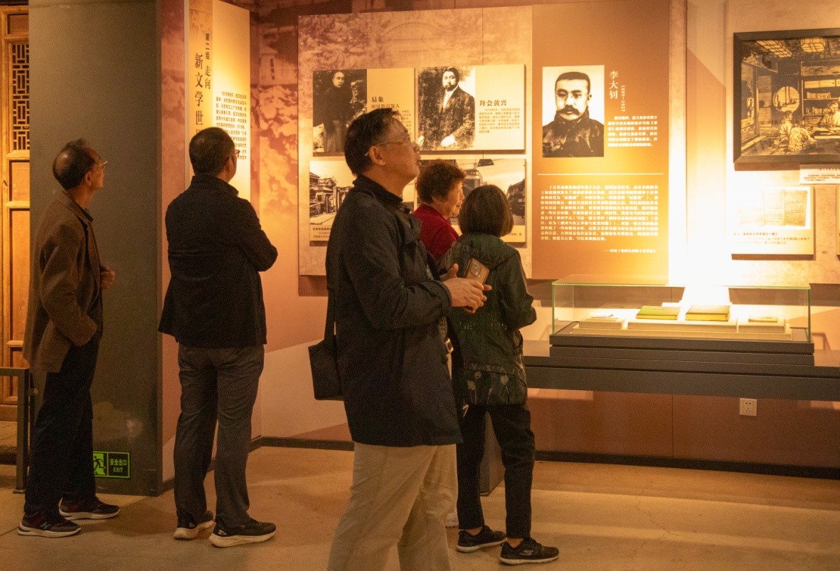 在田汉艺术中心,一幅幅珍贵的照片、手稿、以及各类艺术品,如同一部生动的历史画卷,缓缓展现在大家的眼前,让党员们仿佛穿越时空,亲历了那个风云变幻艺术浪潮澎湃的新文化运动时代。