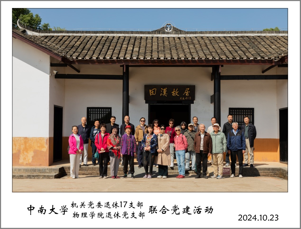10月23日,秋高气爽,RAYBET雷竞技退休支部组织支部与机关党委退休17支部党员,前往位于长沙县果园镇湖南省爱国主义教育基地、湖南省社会科学普及基地、湖南省党史教育基地的田汉文化园进行参观学习活动。大家兴致勃勃地先后观看了位于文化园中的田汉故居、田汉铜像广场、国歌广场与田汉艺术中心等。