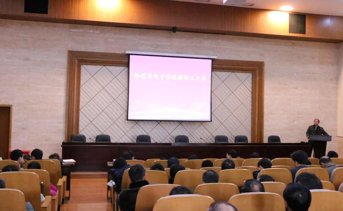 2月26日下午2:30,物理与电子学院在多功能报告厅召开全院教职工大会,大会由院党委书记许宏武同志主持。