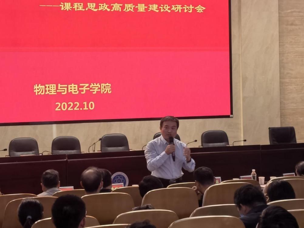 2022年10月19日下午,我院在物理楼116报告厅成功召开2022年课程思政高质量建设专题研讨会。校督导李耀庄教授、彭立敏教授,学院李登伶书记、孙克辉院长等雷竞技领导以及各系教学主任、青年教师参加研讨。会议由龙孟秋副院长主持。