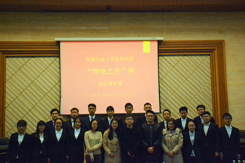 12月3日下午,物理与电子学院第四届“物电之杯”辩论决赛在新校区物理楼116报告厅顺利举办。院辩论队队员担任本场比赛的评委,来自参赛班级的一百余名同学观看了比赛。