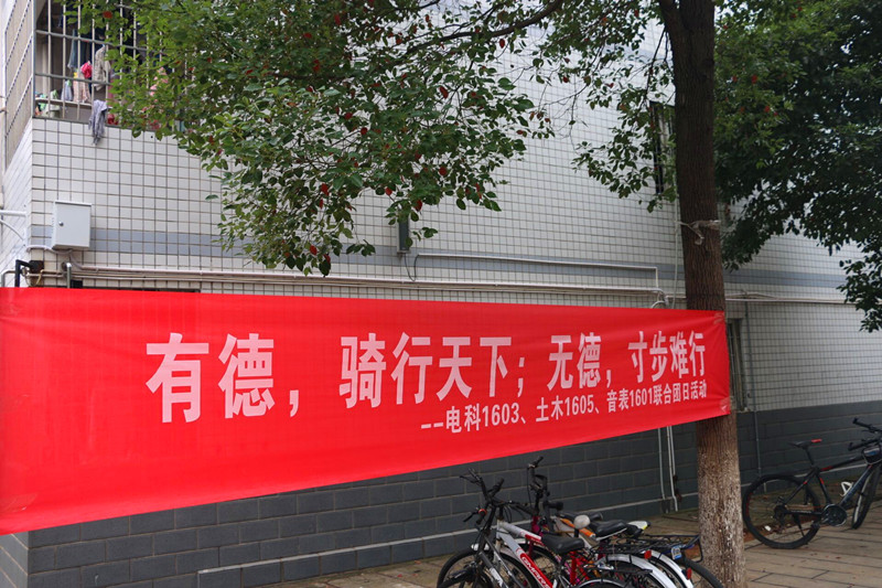 第三部分是文明用车的宣传与实践行动。电科1603班的同学们设计出精美的横幅和海报,向全校同学们宣传文明骑行是一种美德的理念。11月22日下午,全班同学又齐聚雷竞技官网新校区A座门前,以身作则,协助自行车管理队管理自行车。平日里,骑共享单车上学的同学们由于时间紧迫,自行车随意摆放的现象已经司空见惯,被堵得水泄不通的学校大门令进校的同学们十分头痛。电科1603班的同学们不畏辛劳,将被随意停放的共享单车彻底规整,为上下学的同学们开辟出一条通畅的道路。