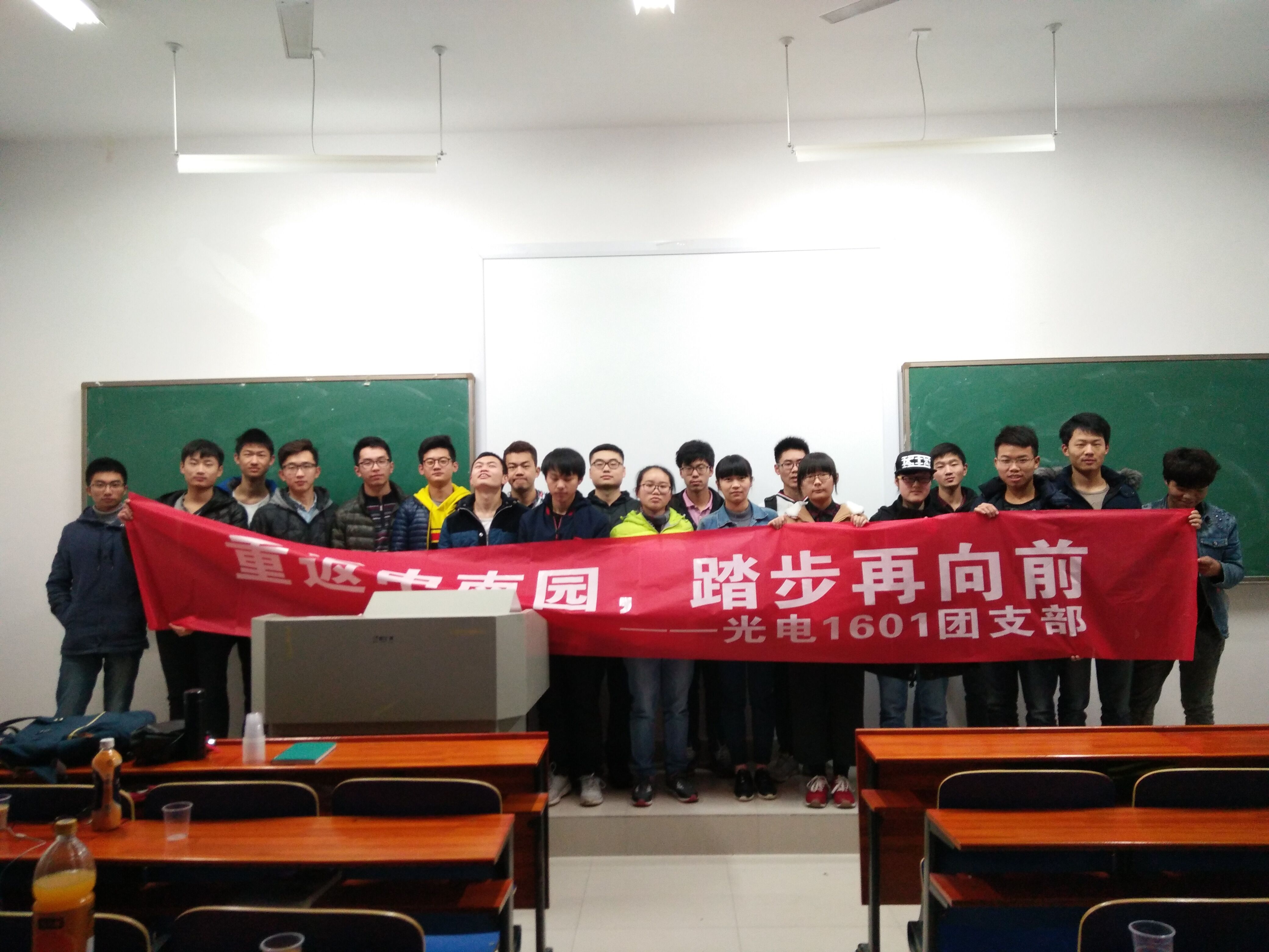 3月23日下午7时,物理与电子学院光电1601班在新校区物理楼131室举行了以“重返中南园,踏步再向前”为主题的团日活动。本次团日活动由组织委员石顺心和团支书成思怡主持。
