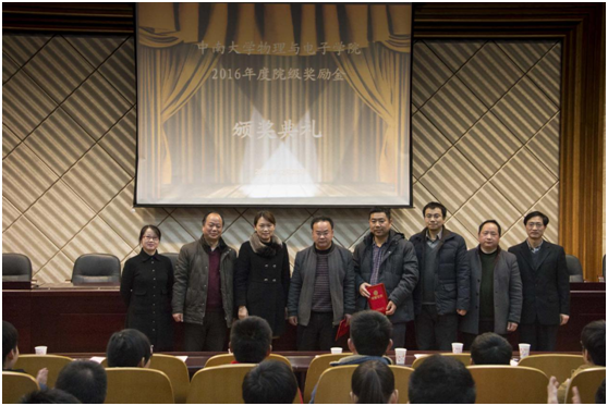 12月28日下午4时,物理与电子学院2015-2016年度院级奖励金颁奖典礼在物理楼116报告厅隆重举行。“联民奖学金”设立者颜联民、“品高奖、助学金”设立者赵品高、物电院党委书记许宏武、院长何军、副院长李长庚、院党委副书记谢群、各系所主任以及全体辅导员出席了颁奖仪式。