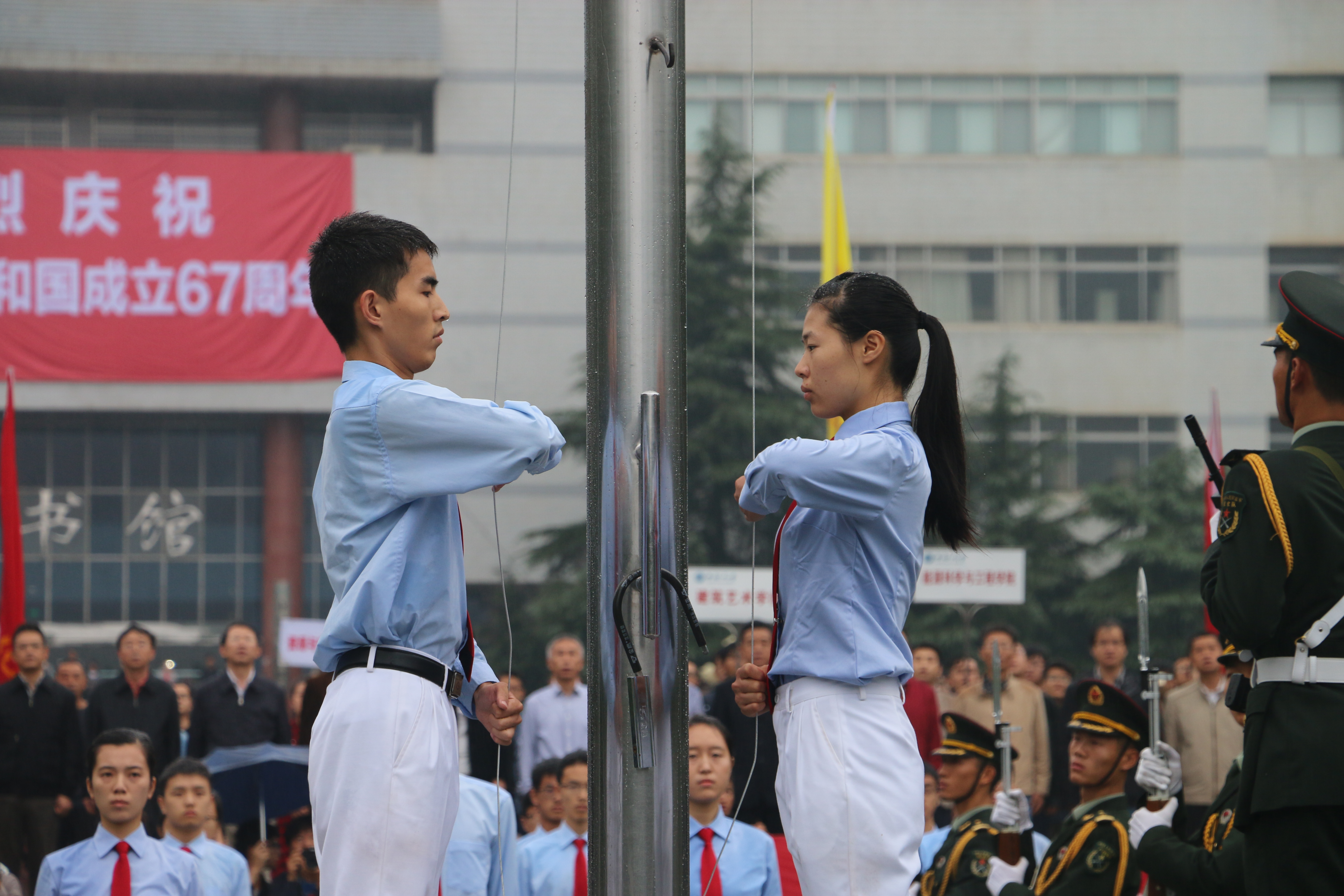 2016年10月1日7:00,雷竞技官网近2000名新生、校级和各院领导齐聚在校本部图书馆前,举行了庄重而又充满意义的升旗仪式。物理与电子学院的同学们,更是早早的集合,满怀激情的参加了本次升旗仪式。