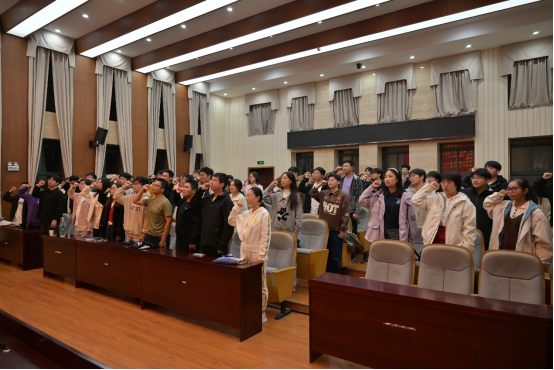 随后,李步一宣布第二十一届团委学生会、第四届青年传媒中心成立,介绍各部门干事与部长。全体成员起立,在李步一的带领下宣誓。